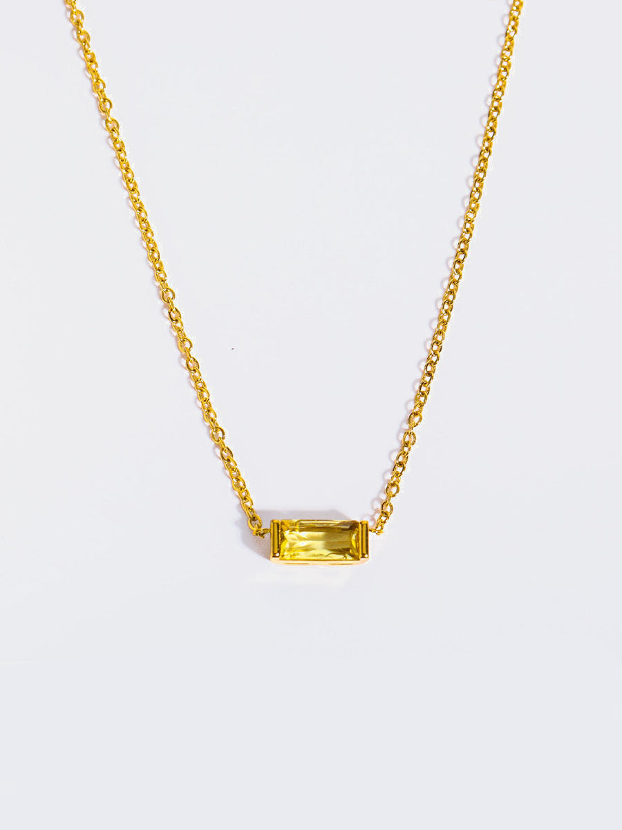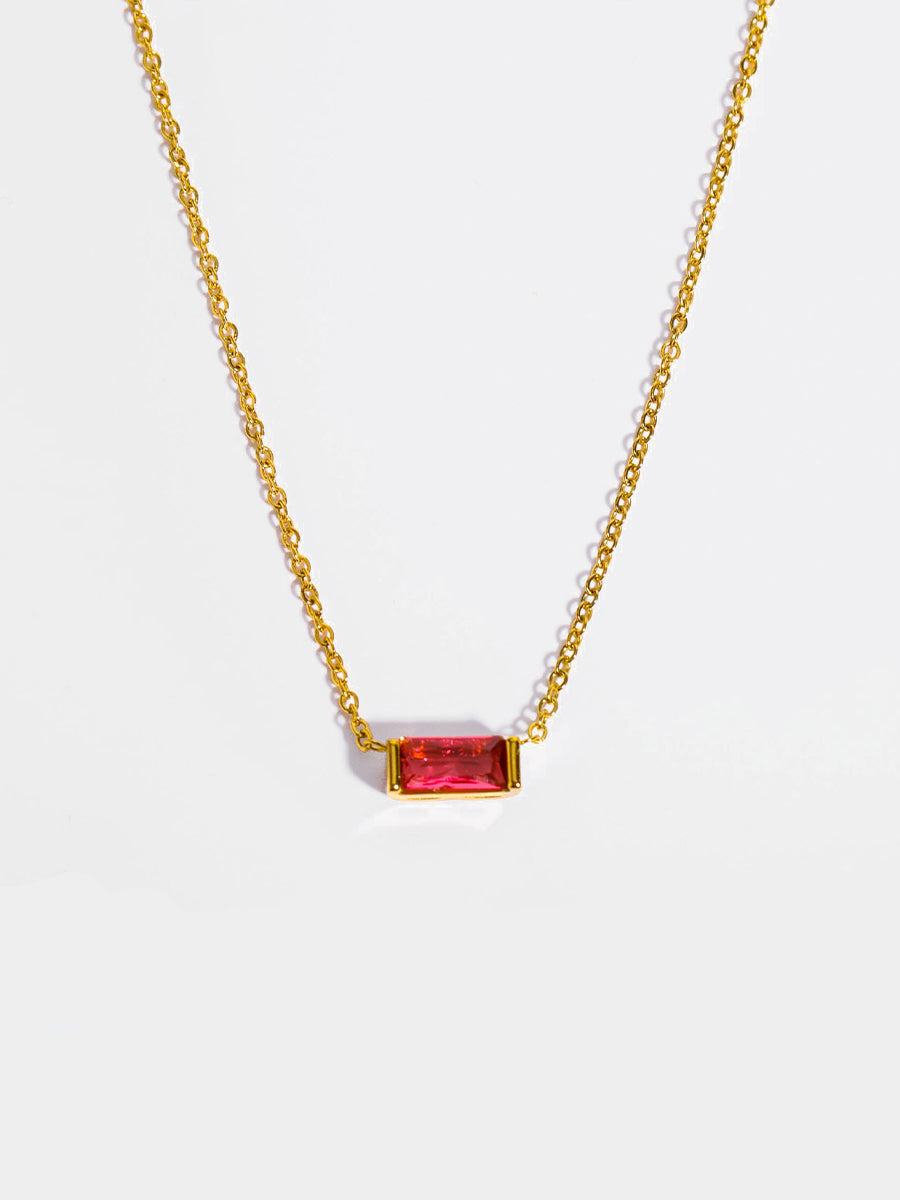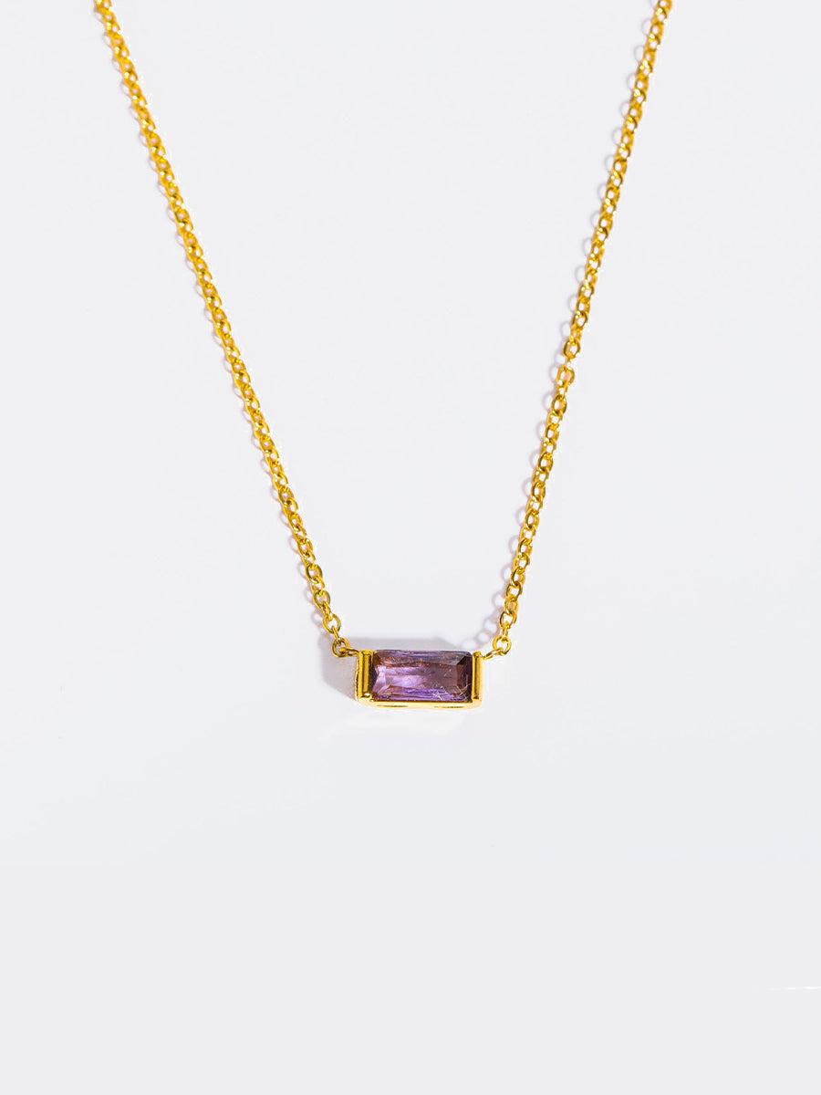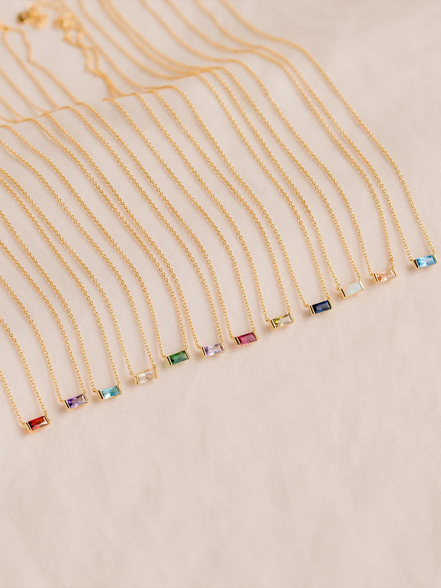 The Aurora Birthstone Necklace captures your individuality in a refined, modern design. Each hand-set baguette gemstone represents a birth month, bringing a touch of brilliance and symbolism to your everyday style. Paired with a delicate gold chain, this piece is versatile, gift-worthy, and designed to shine for years to come.