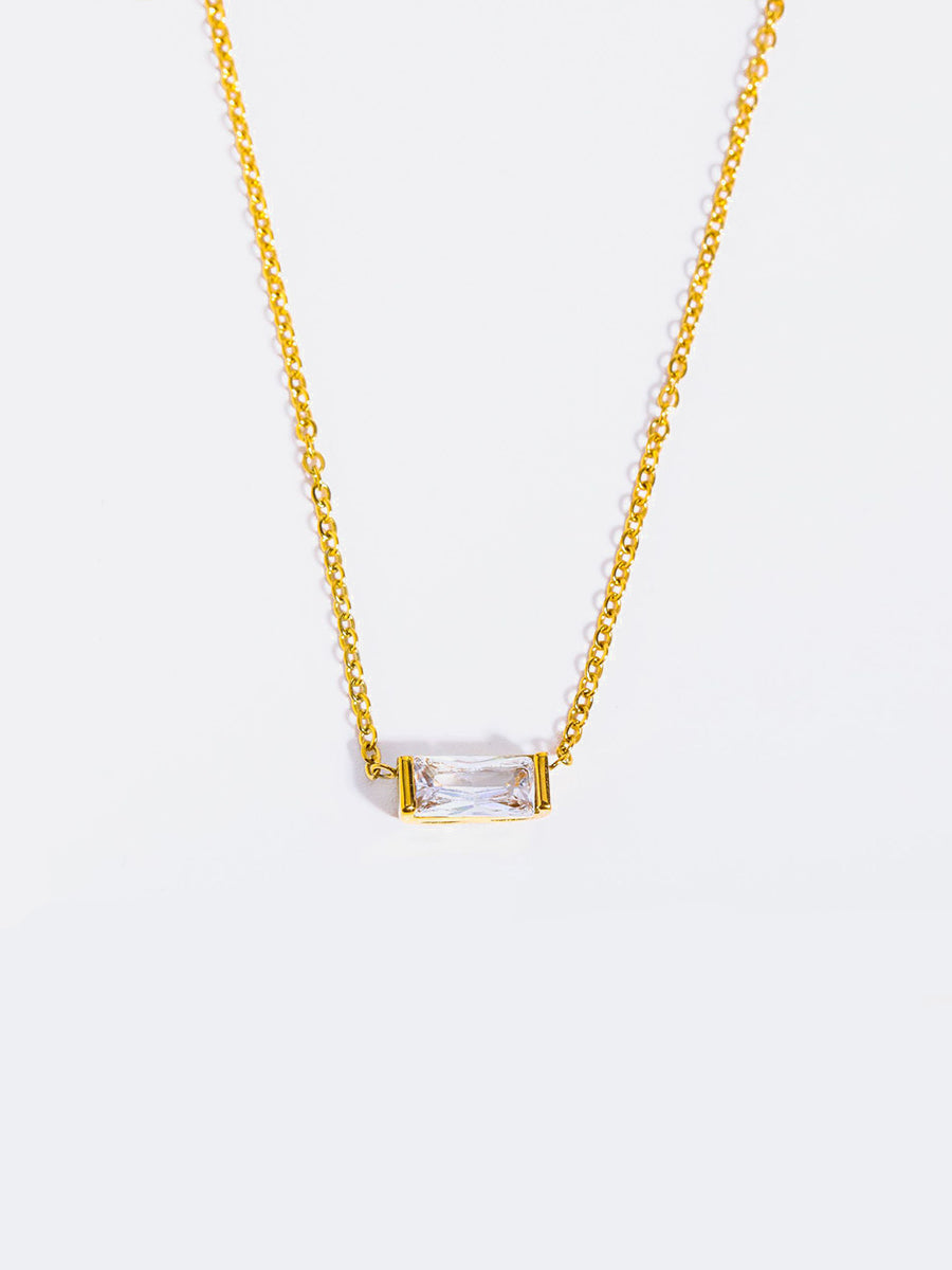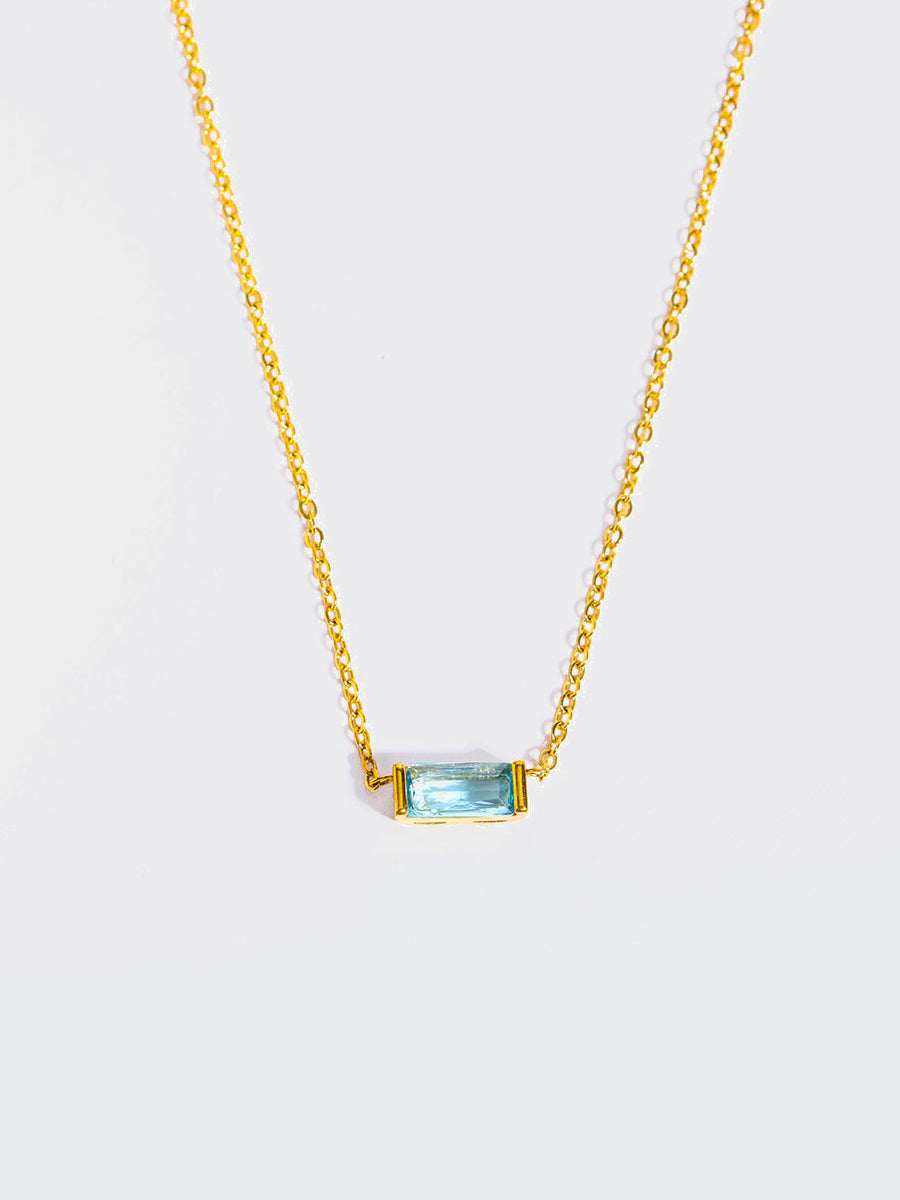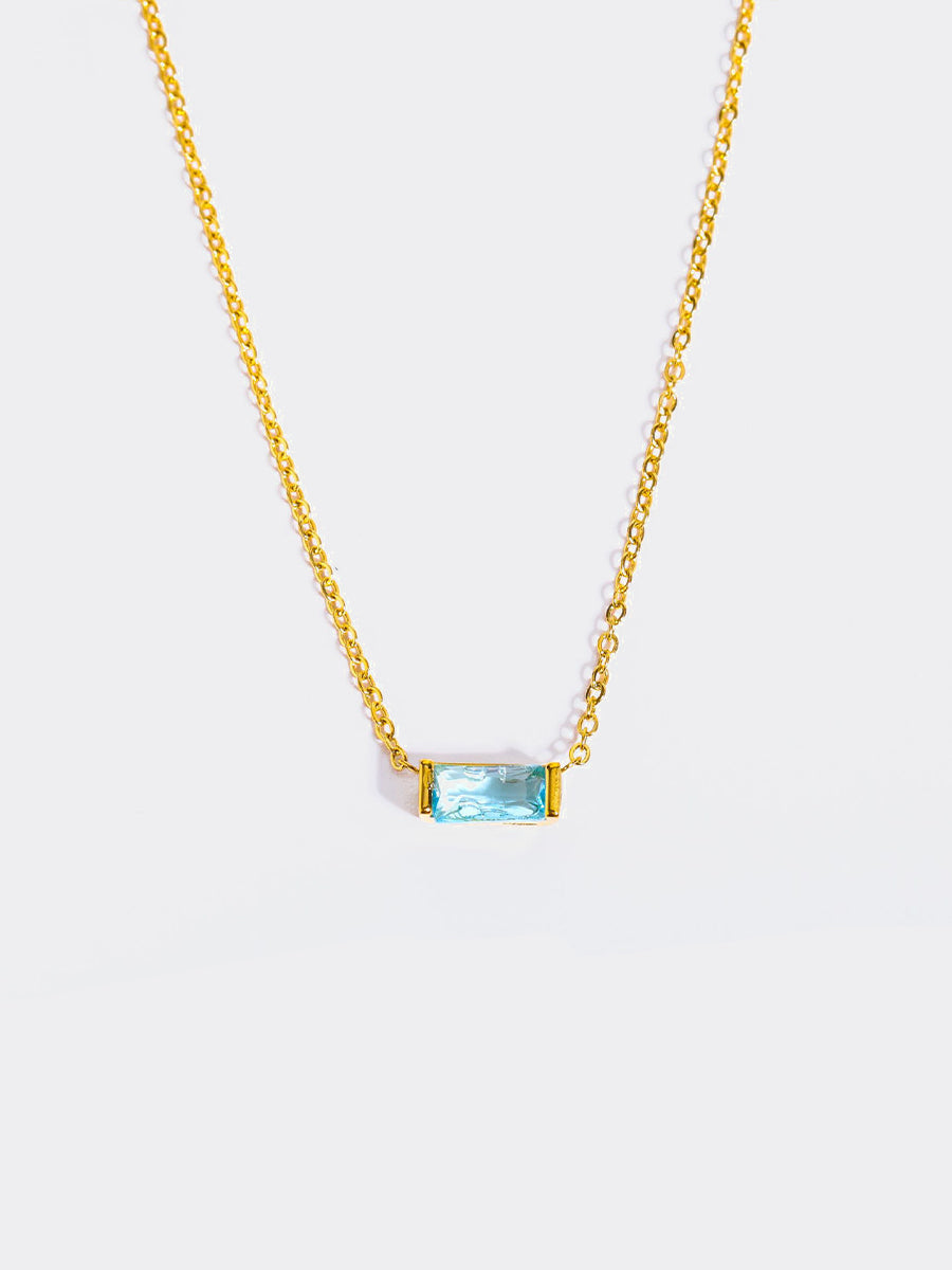 Illuminate your style with the Aurora Birthstone Necklace, a timeless piece designed to celebrate your story. Featuring a sleek gold-plated chain and a radiant baguette-cut birthstone for each month, this necklace blends minimalist elegance with personal meaning. Perfect for layering or wearing solo, it’s a thoughtful gift for birthdays, milestones, or simply treating yourself.