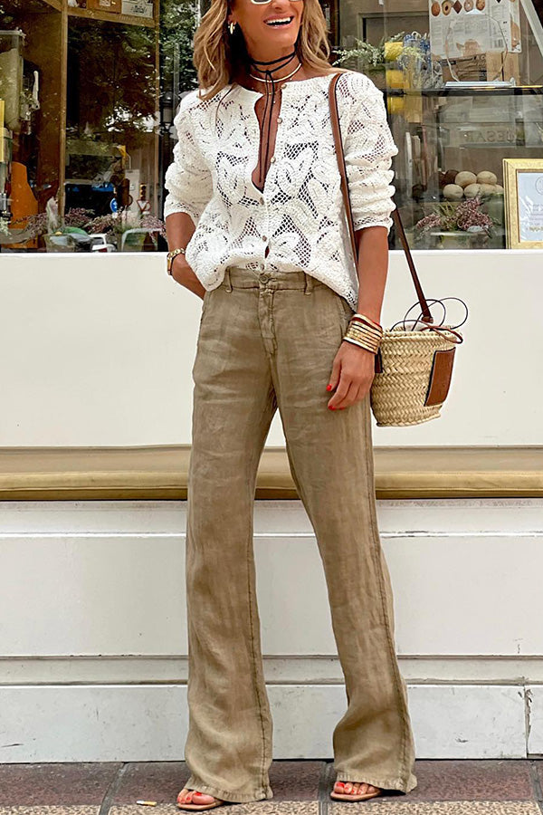 ボヘミアンかぎ針編みレースラウンドネック長袖ブラウス