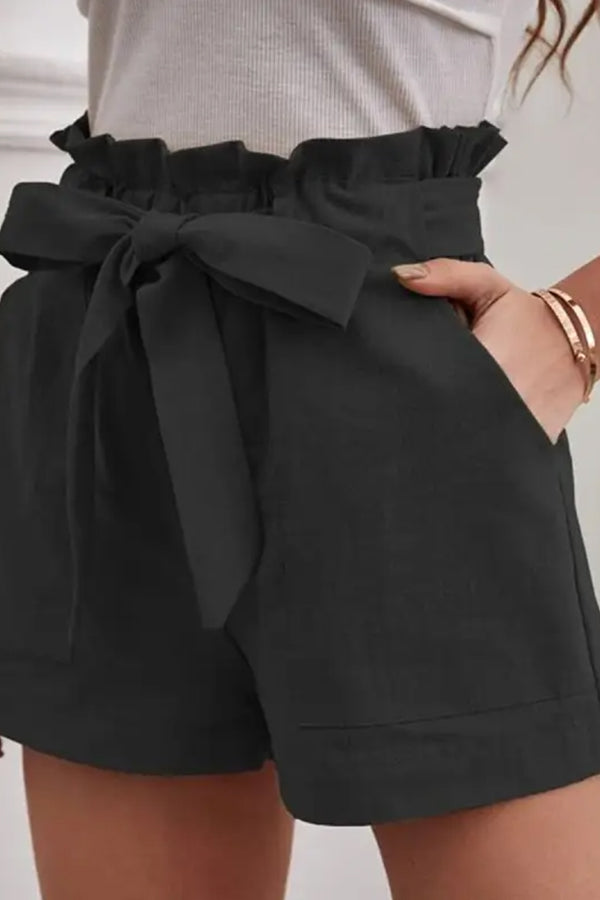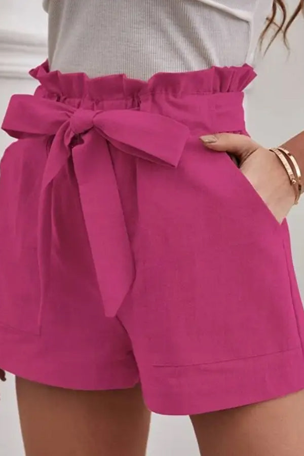 カジュアル ルーズ ソリッド カラー ウエストゴム タイ ショーツ