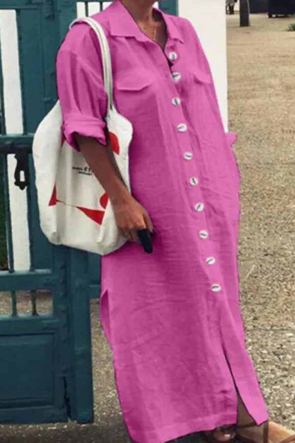 カジュアルソリッドパッチワークターンダウンカラーシャツドレスワンピース(3色)