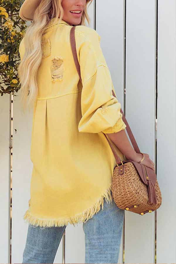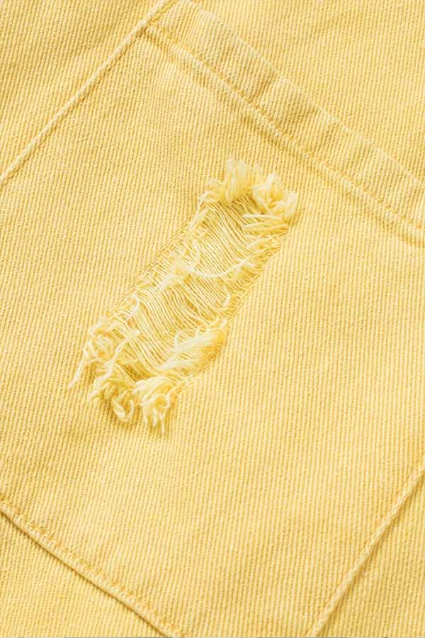 胸ポケット付きダメージ加工ローヘムデニムジャケット