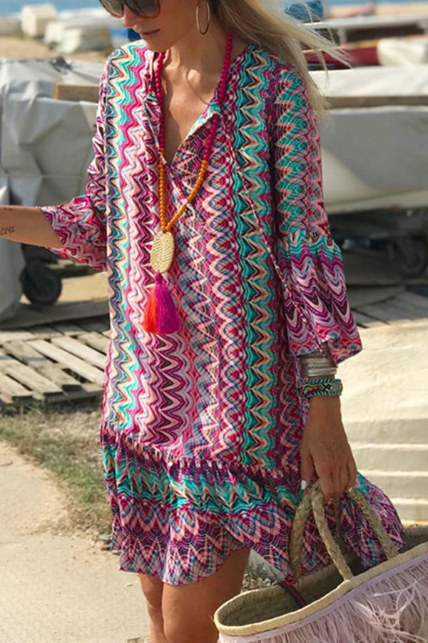 Hailee カラフルなウォーター リップル プリント カジュアル ビーチ ミニ ドレス