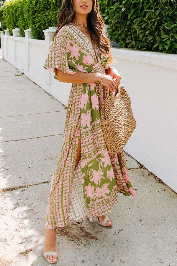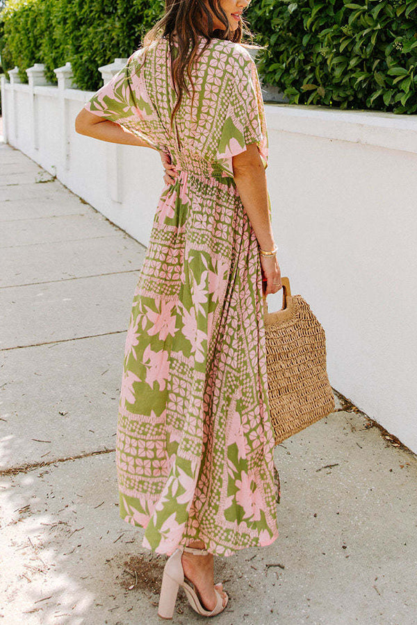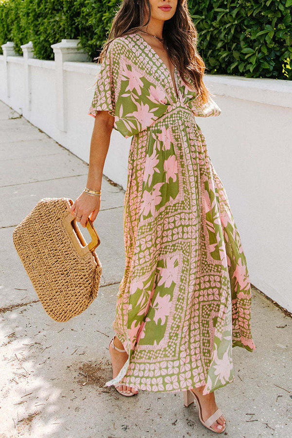 ハイウエストスパイスガールドルマンスリーブVネックプリントセクシーレディースドレス