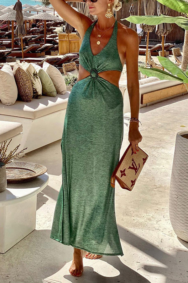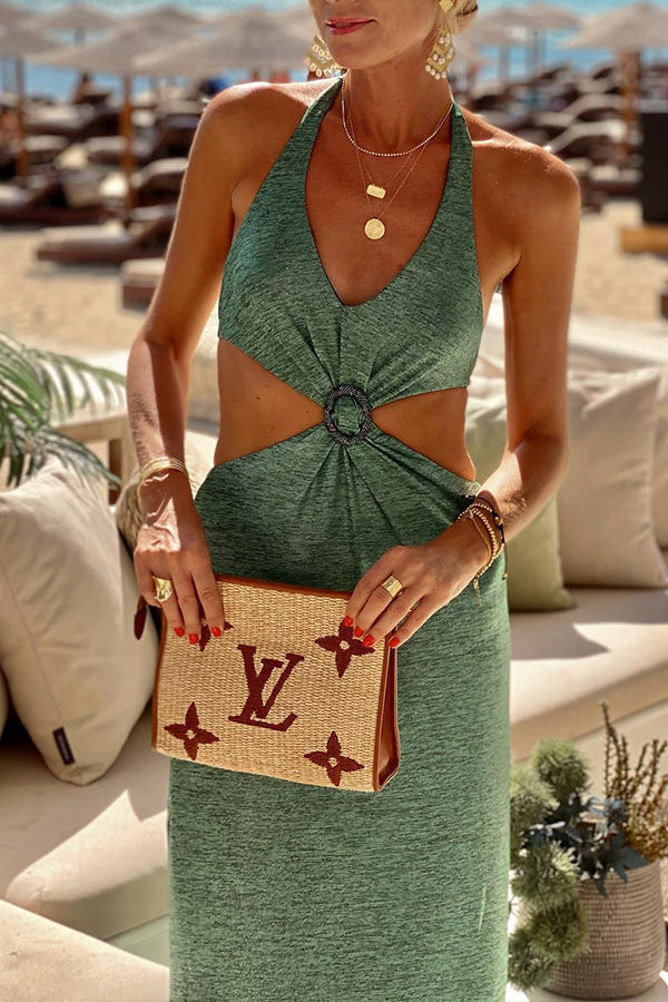 Island Covenant リング装飾両面オープンウエストベルト付きリゾートロングドレス