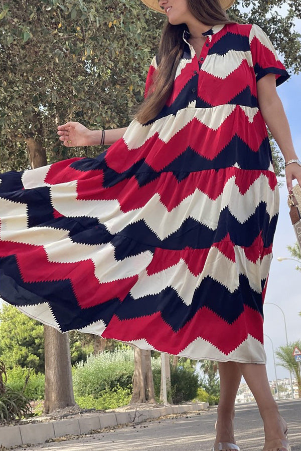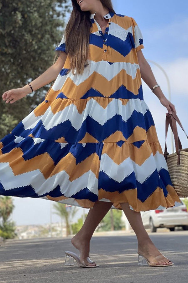 シャツカラープリントスイング半袖ドレス